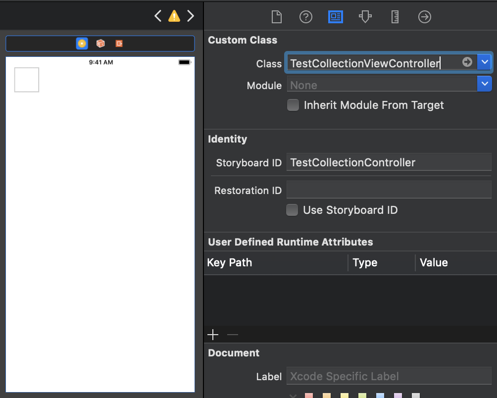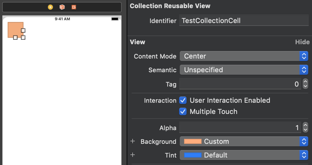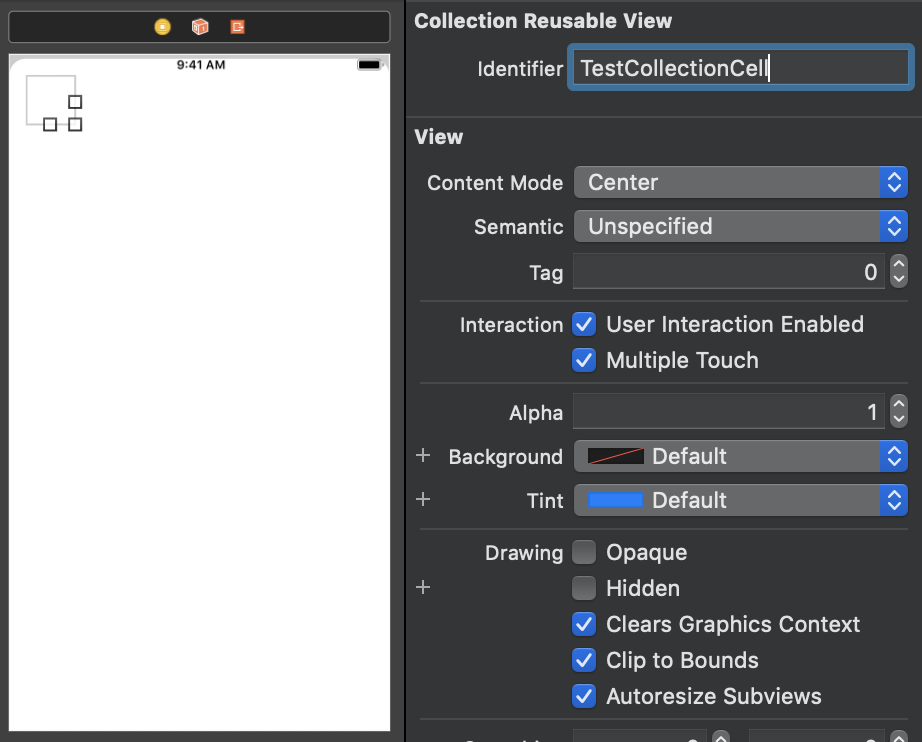 2. UICollectionViewCell에 dentifier를 지정한다. ("TestCollectionCell"라고 지었다.)