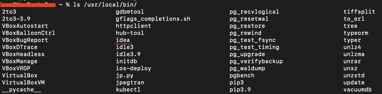 idea 명령이 실행되는 디렉토리가 어딘지 찾아보았고, /usr/local/bin 아래에 명령어들이 정의되어있는 것을 확인했다.
