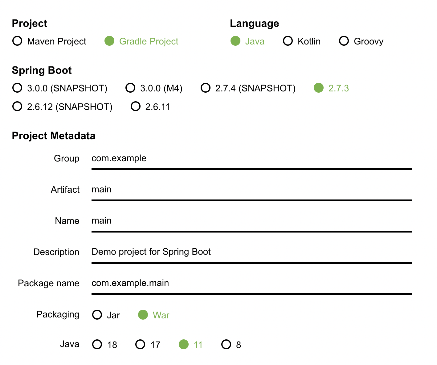 문제 발생 1. SpringBoot Initializer(https://start.spring.io/)에서 이런 값을 설정한 후 initializer프로젝트를 내려받고 바로 실행하니 다음과 같이 에러 발생!